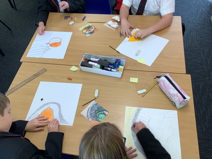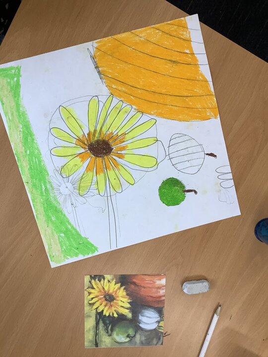 In preparation for our Harvest Service next week, we have enjoyed working on some collaborative harvest artwork using oil pastels.