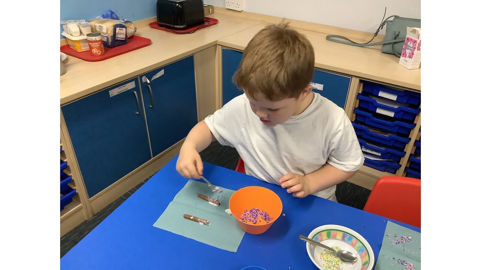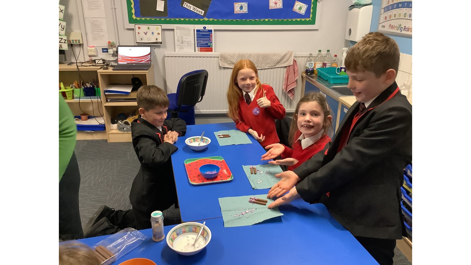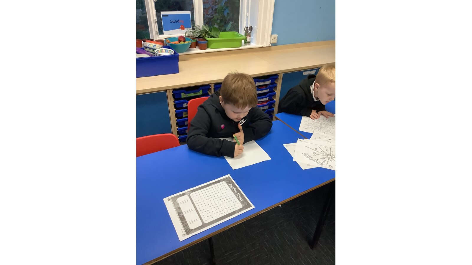 What a lovely week back we have had in Care Club. The children have been busy having fun and creating lots of artwork including firework pictures and colouring giant baubles for the Co-Op’s Christmas Tree. They made some sparklers with different coloured paper and pipe cleaners and sprinkled hundreds and thousand sugar strands onto iced chocolate fingers for a tasty treat. Some of the boys worked great together to build a football stadium out of Lego and others played with the cars and track. The young ones had lots of fun playing with play dough, dressing up dollies and playing the Humpty Dumpty balancing game, hope you all have a great weekend and enjoy any firework or bonfire displays, see you all next week.