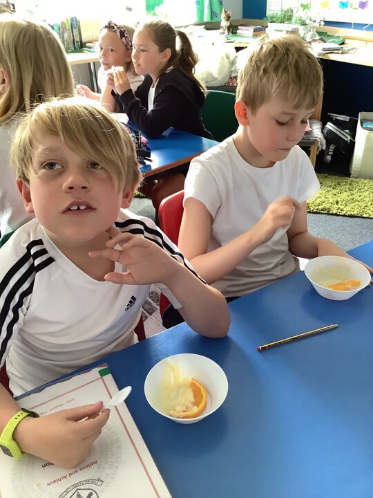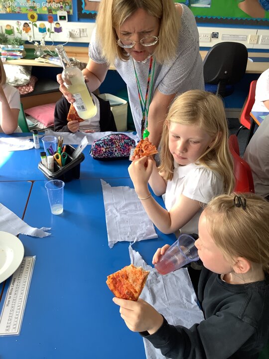 This week, in Class 3, we have enjoyed writing persuasive sentences about Sicily. To enhance our writing, we spent a lesson sampling Sicilian cuisine which included a three-course meal: a tomato and mozzarella salad accompanied with blood orange fizz, stone baked pepperoni pizza accompanied with Sicilian lemonade and finally sweet vanilla ice cream and a juicy orange slice. It was very yummy! In Maths, Year 4 have been exploring the different types of quadrilaterals whilst Year 3 have been consolidating their learning on time. In Geography, we used an atlas to locate the 4 capital cities within the United Kingdom as well as other large cities. We then discussed the meaning of human features and used the laptops to research famous landmarks in the UK.