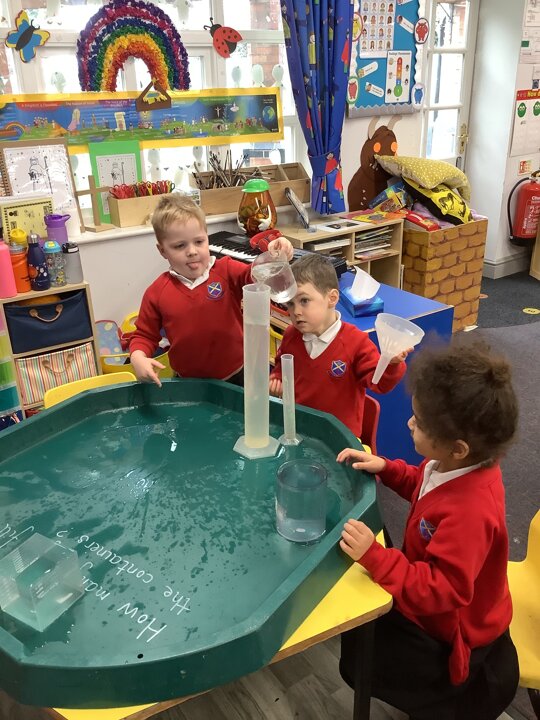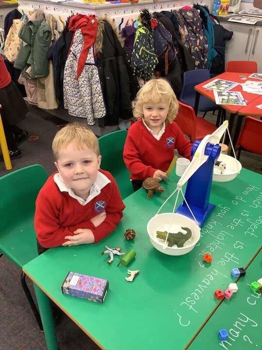 This week we have been busy exploring weight and capacity. The children have been experimenting with different objects to see which are heavy or light. They have been trying to make their scales balance. They discovered that large objects are not always heavy.