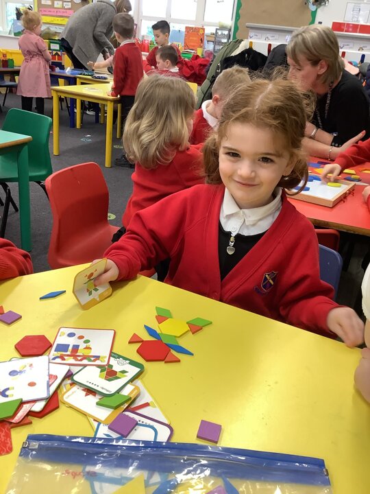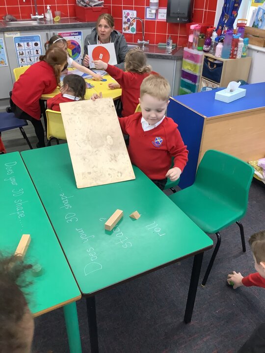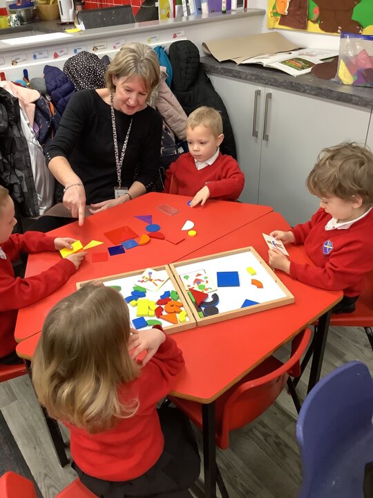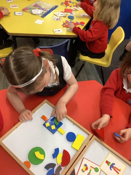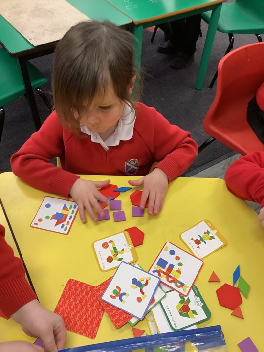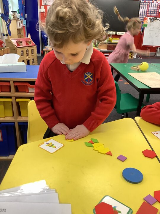 In maths the children continued to explore shape. They have explore shapes within shapes and have put shapes together to make new shapes. They have also explored pattern.