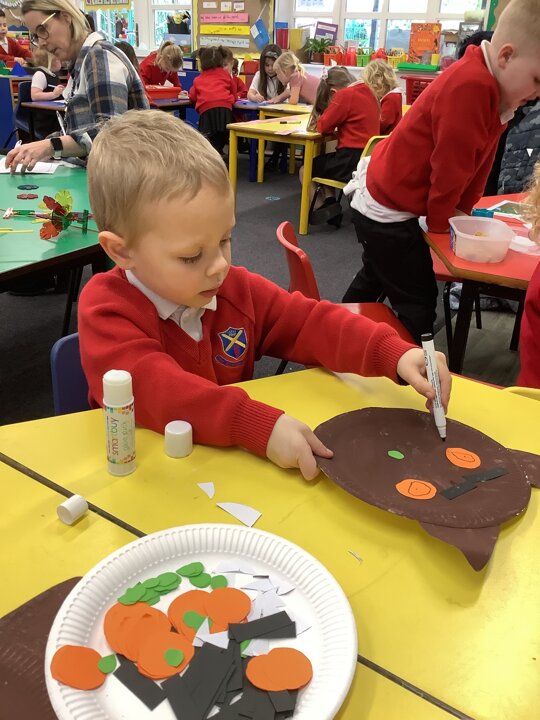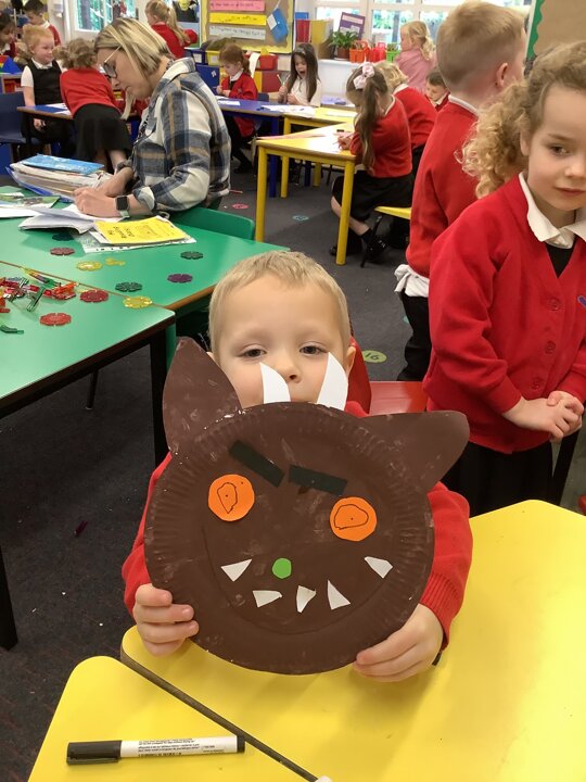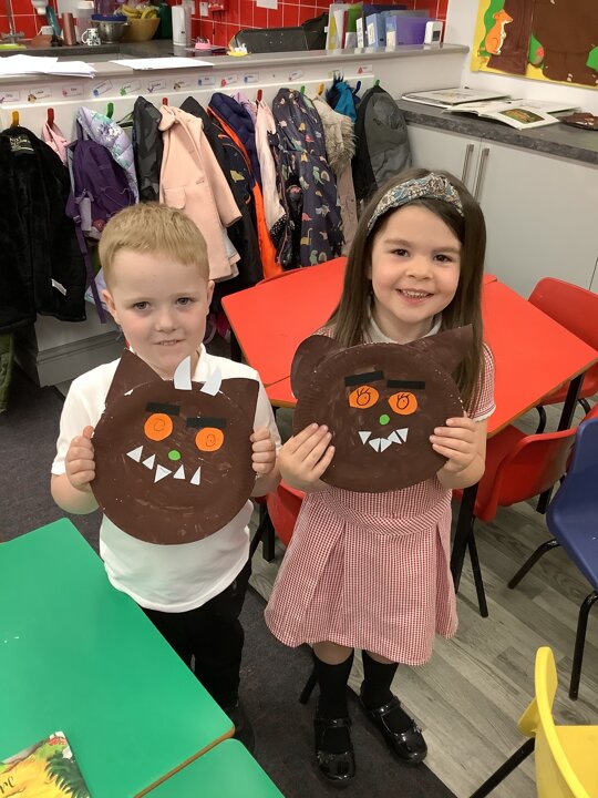 This week we have read the Gruffalo. The children have made the Gruffalo and the Reception children wrote sentences to describe him.
