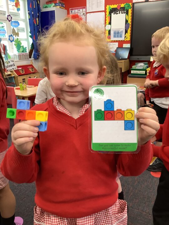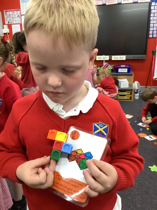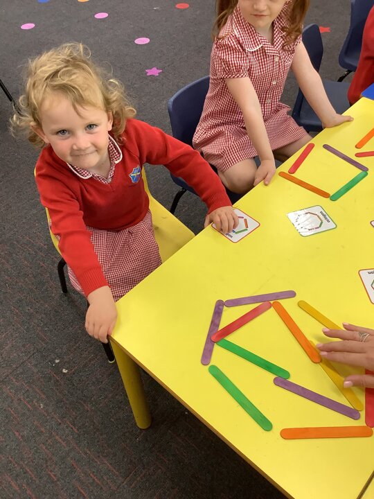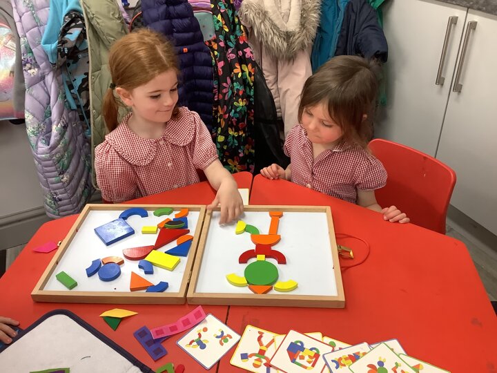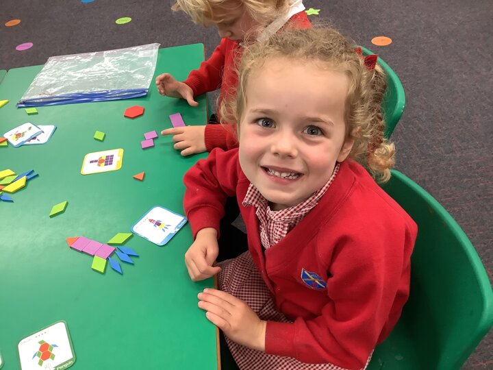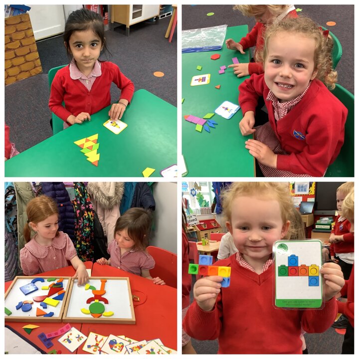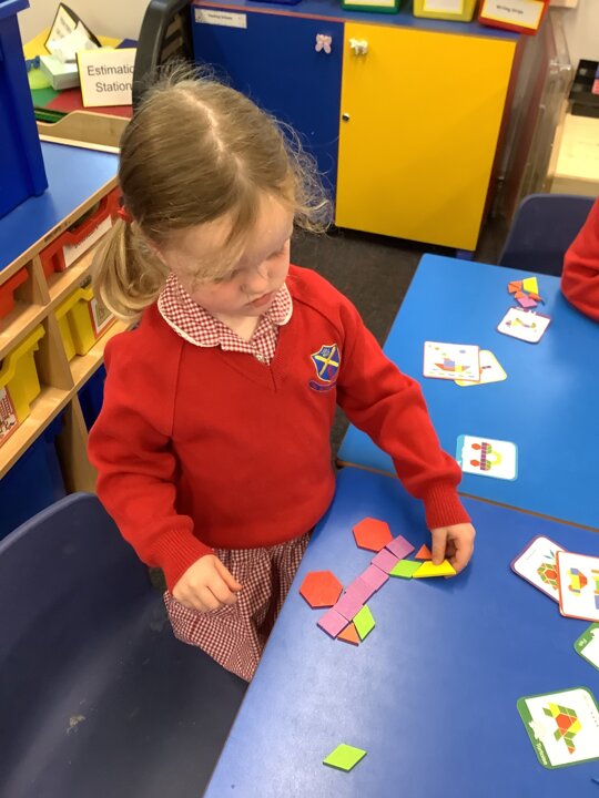 In maths, the children have continued to explore arranging 2D shapes. They have explored how to use shapes to make pictures or other 2 D shapes.