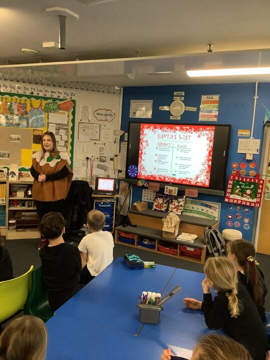 This week, Class 3 has been filled with holiday cheer! We had a special visitor, Lucy from Severn Trent Water, who came dressed as a Christmas pudding to lead us through a festive quiz.