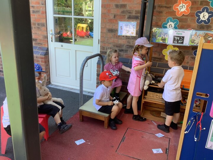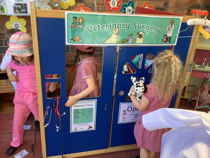 The children have enjoyed making and painting dogs and cats. They have really enjoyed taking their pretend pet to the vets and tomorrow they will take their pets through an agility course!