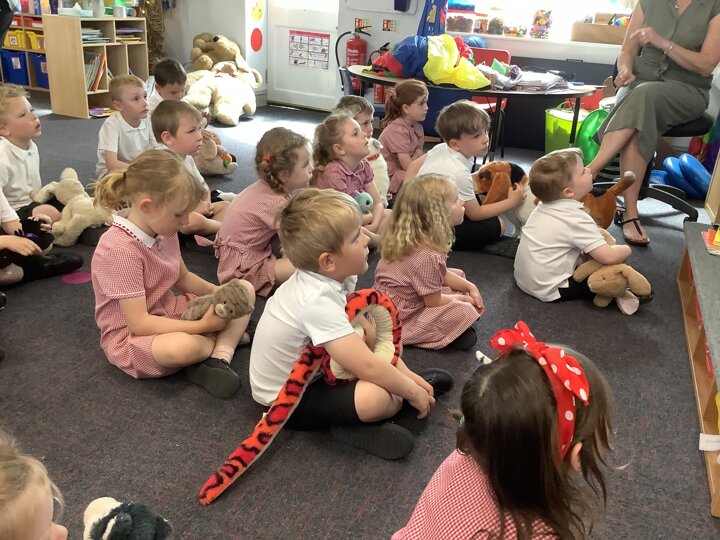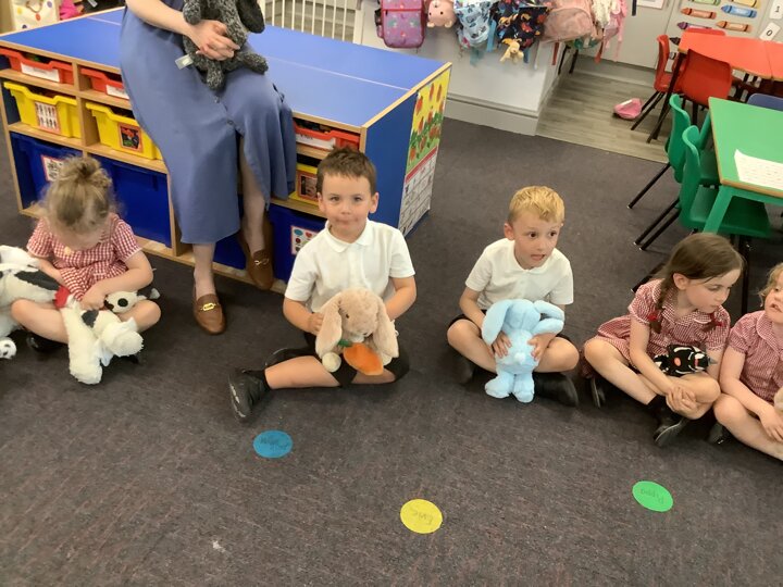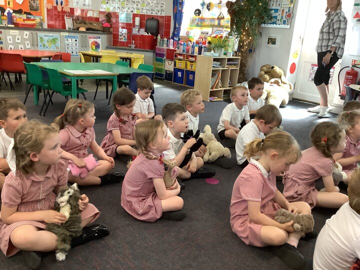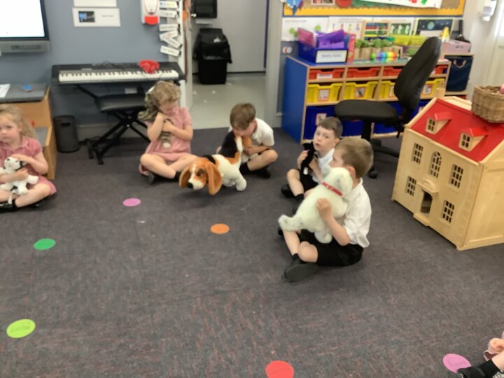 In music the children enjoyed listening to music about animals. Their pretend pets joined in with songs about pets!