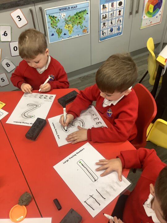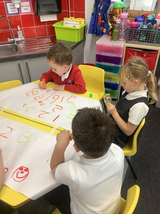 In maths we focused on numbers 1,2 and 3. See if your child can form and recognise these numbers!
