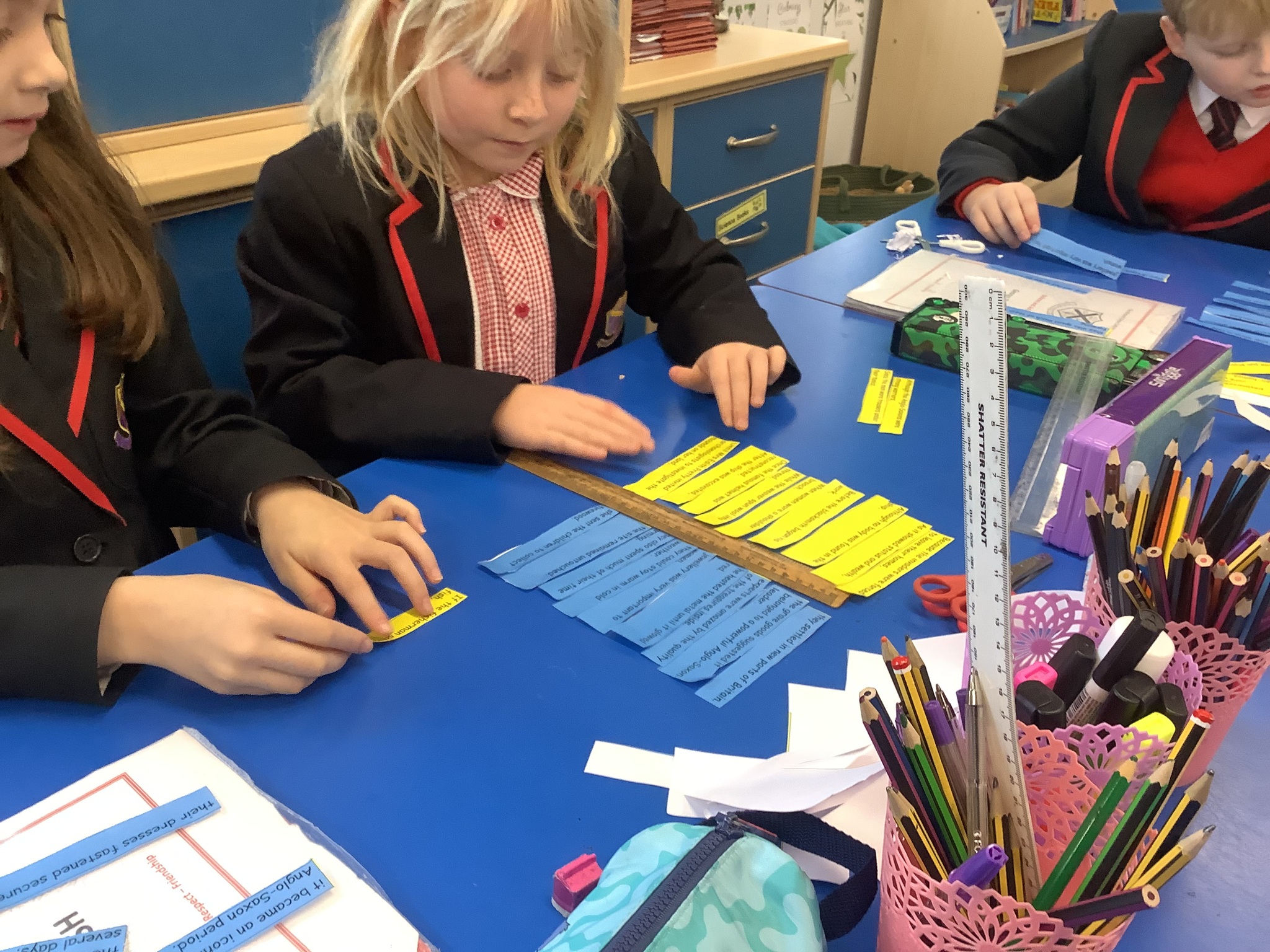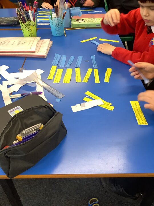At the beginning of the week, we recapped subordinate clauses so that we can use them in our upcoming non- chronological reports about Anglo Saxons. When we practically built sentences, the colours supported the children’s understanding of where the comma should be positioned and we had a rich discussion about the difference between a main clause and a subordinate clause. in maths, we have been learning about how to measure the perimeter of a shape.