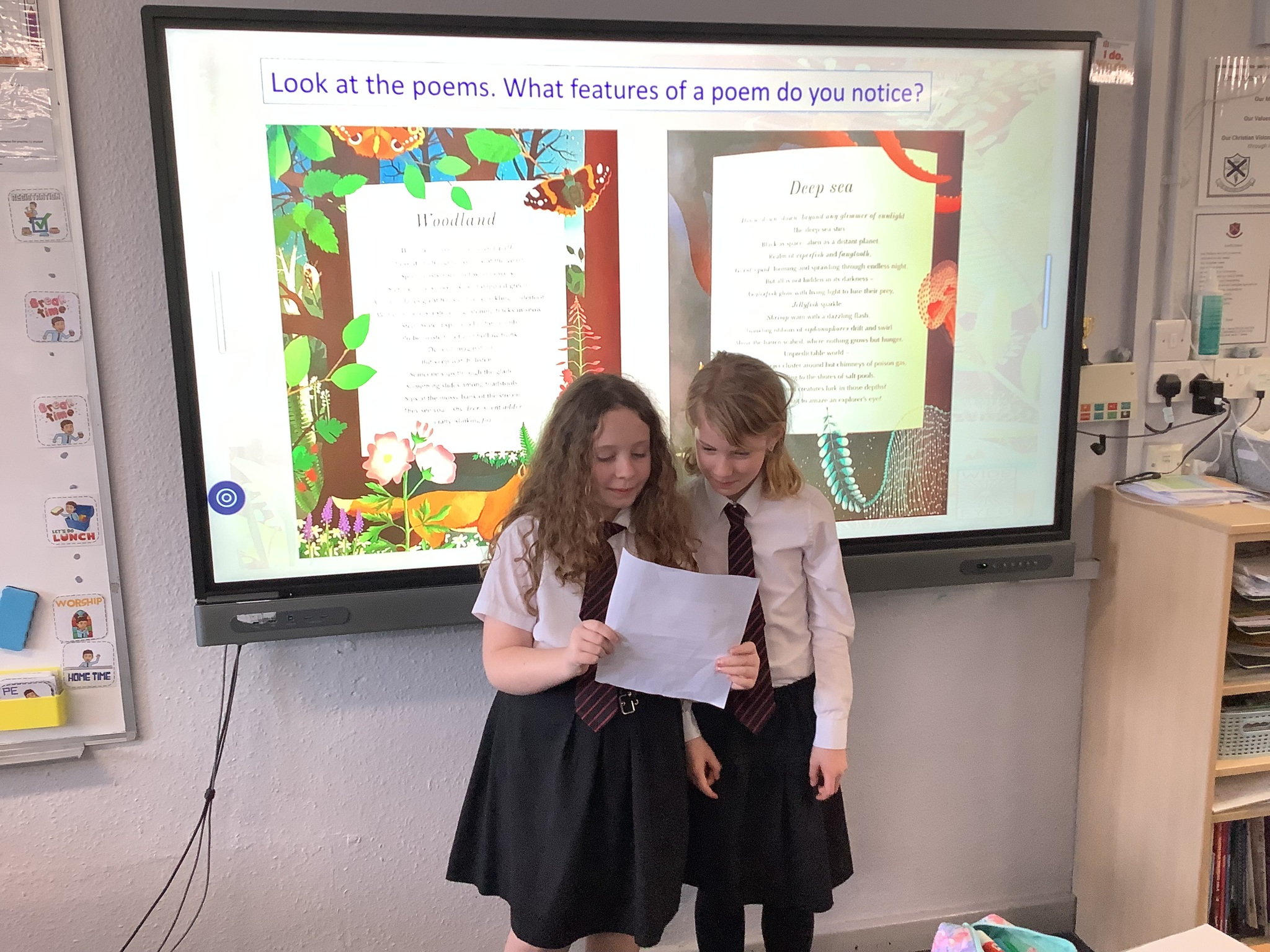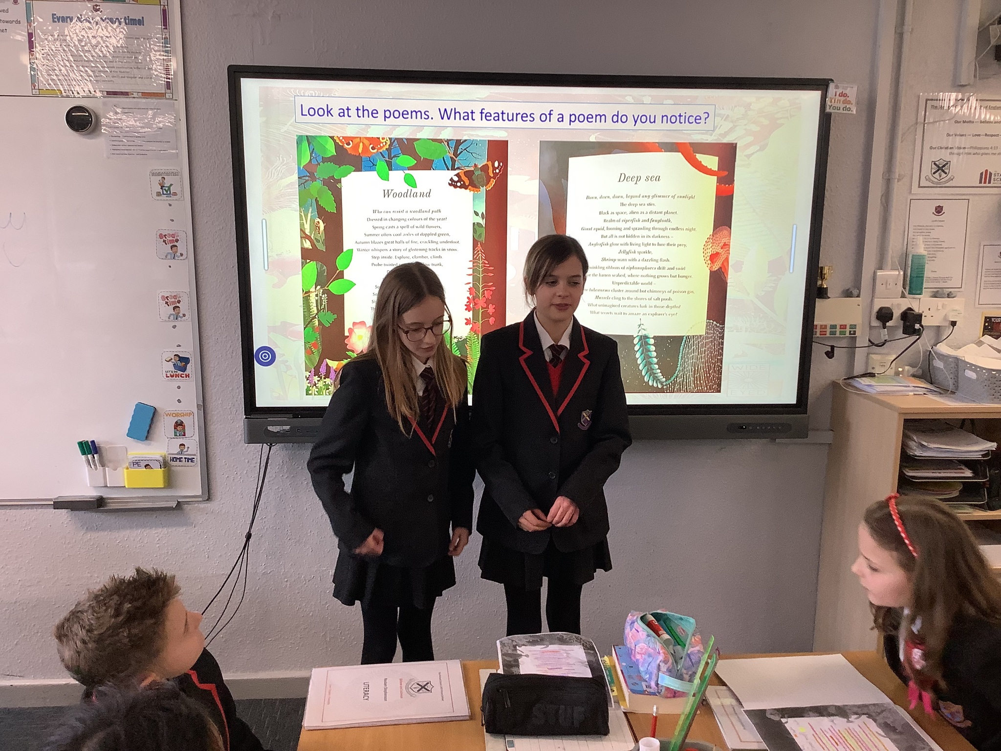 We kept the Maths momentum going on Wednesday by moving on from triangles to learning about the area of parallelograms. It was satisfying to see how the shapes related to what we learned the day before. In English, we analysed and performed some of the ‘Wild Nature’ poems and dicussed the techniques and descriptive language that was used. In RE, we learnt all about ‘Gospel’. We discussed what the word means and why it is so important, and we designed some wonderful posters to show our understanding.