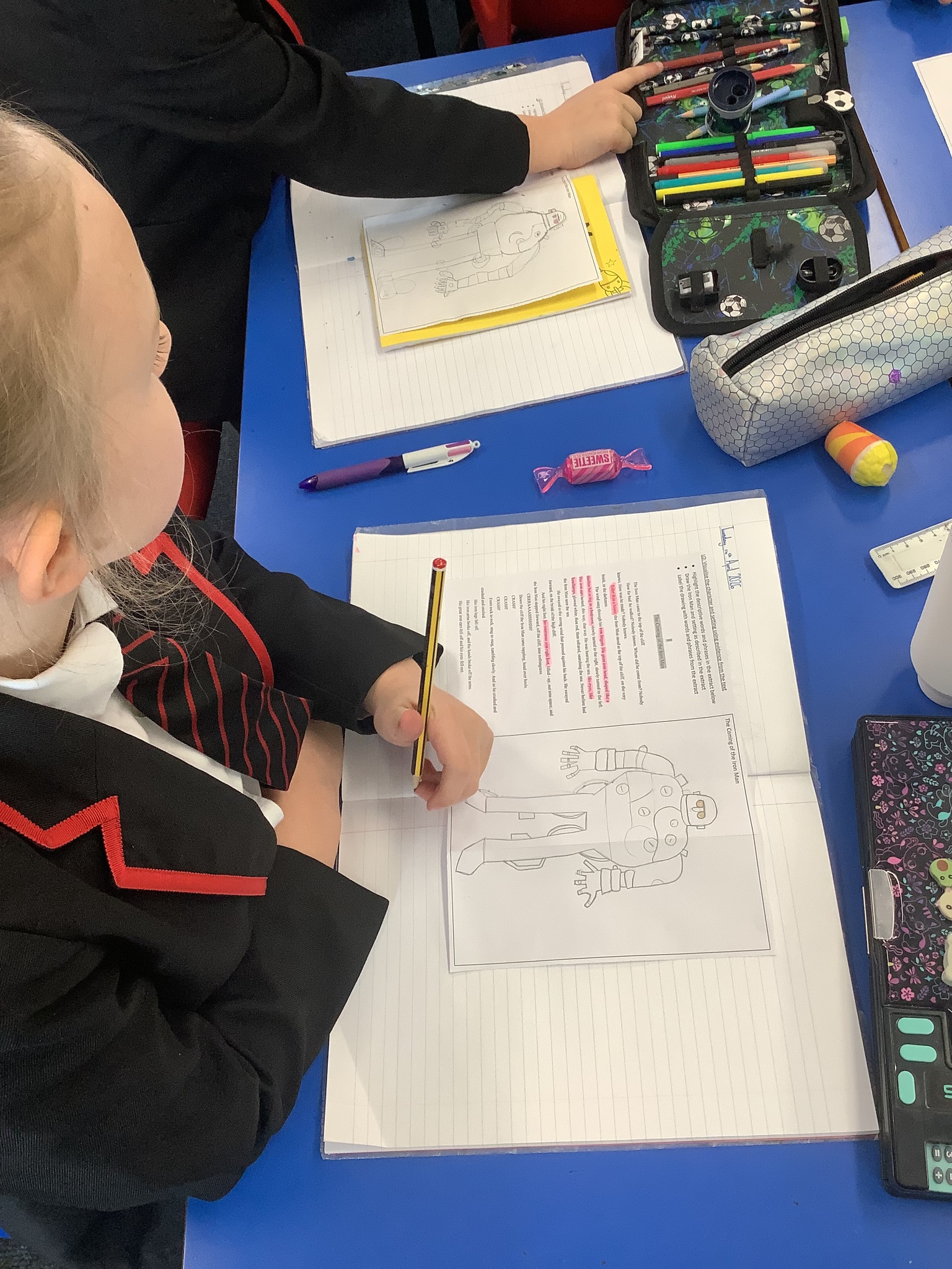 In our Maths lessons, we jumped into our new topic on mass and capacity. The classroom was buzzing as the children got hands-on with scales and counting in intervals, measuring accurately in grams and kilograms. We’ve also been tackling the challenge of finding equivalent masses, which has really helped everyone get to grips with how these units of measurement relate to one another. Meanwhile, our English sessions have seen the arrival of our new class book, The Iron Man by Ted Hughes. After making some clever predictions about where this giant might have come from, the class used specific clues from the text to visualize and sketch the character. We have also been experimenting with figurative language, filling our books with punchy alliteration, vivid metaphors, and similes to bring the Iron Man to life.