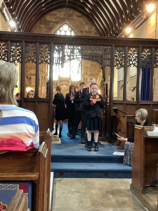 We were blessed with glorious sunshine streaming through the stained-glass windows as we gathered, creating a bright and uplifting atmosphere. It was fantastic to see every single child from our school present.