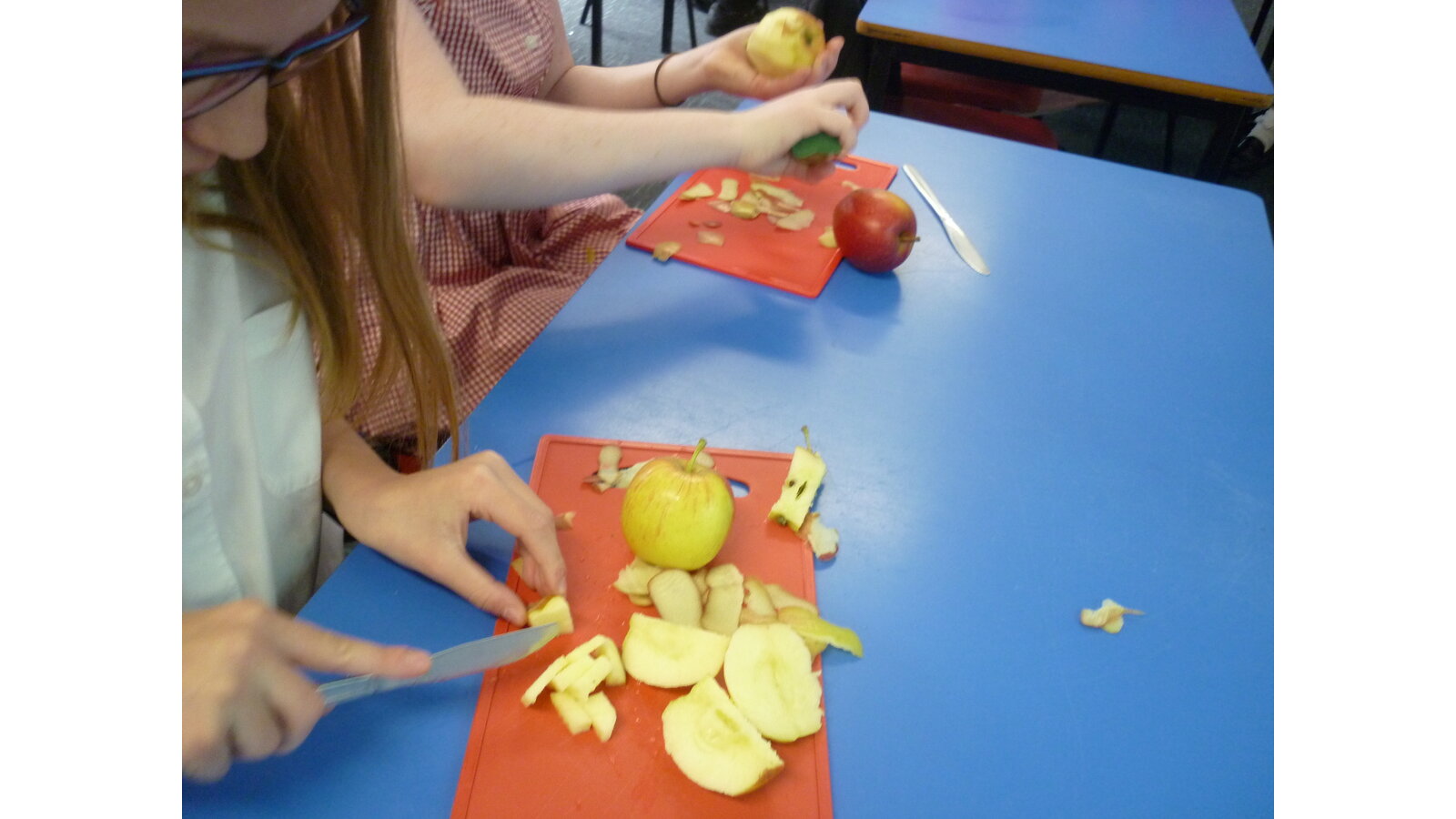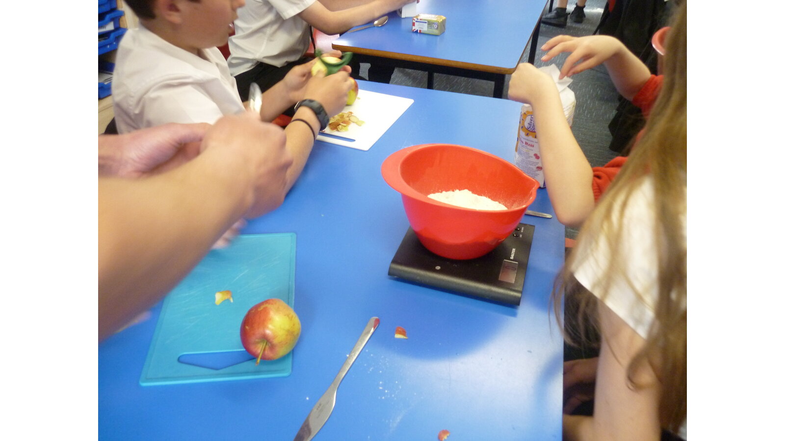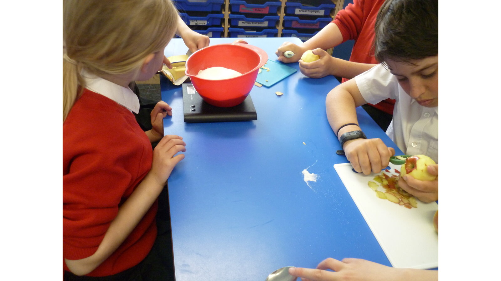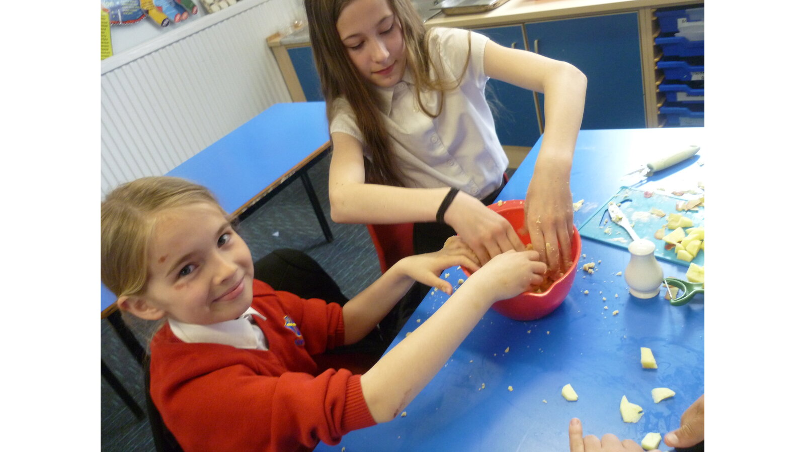 In DT this week, we cooked an apple crumble. All of us helped to peel and cut the apple then we mixed ingredients together to make crumble. It tasted delicious!