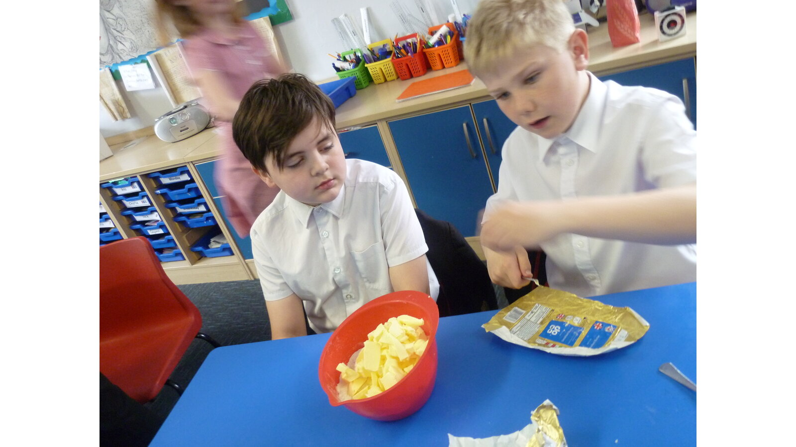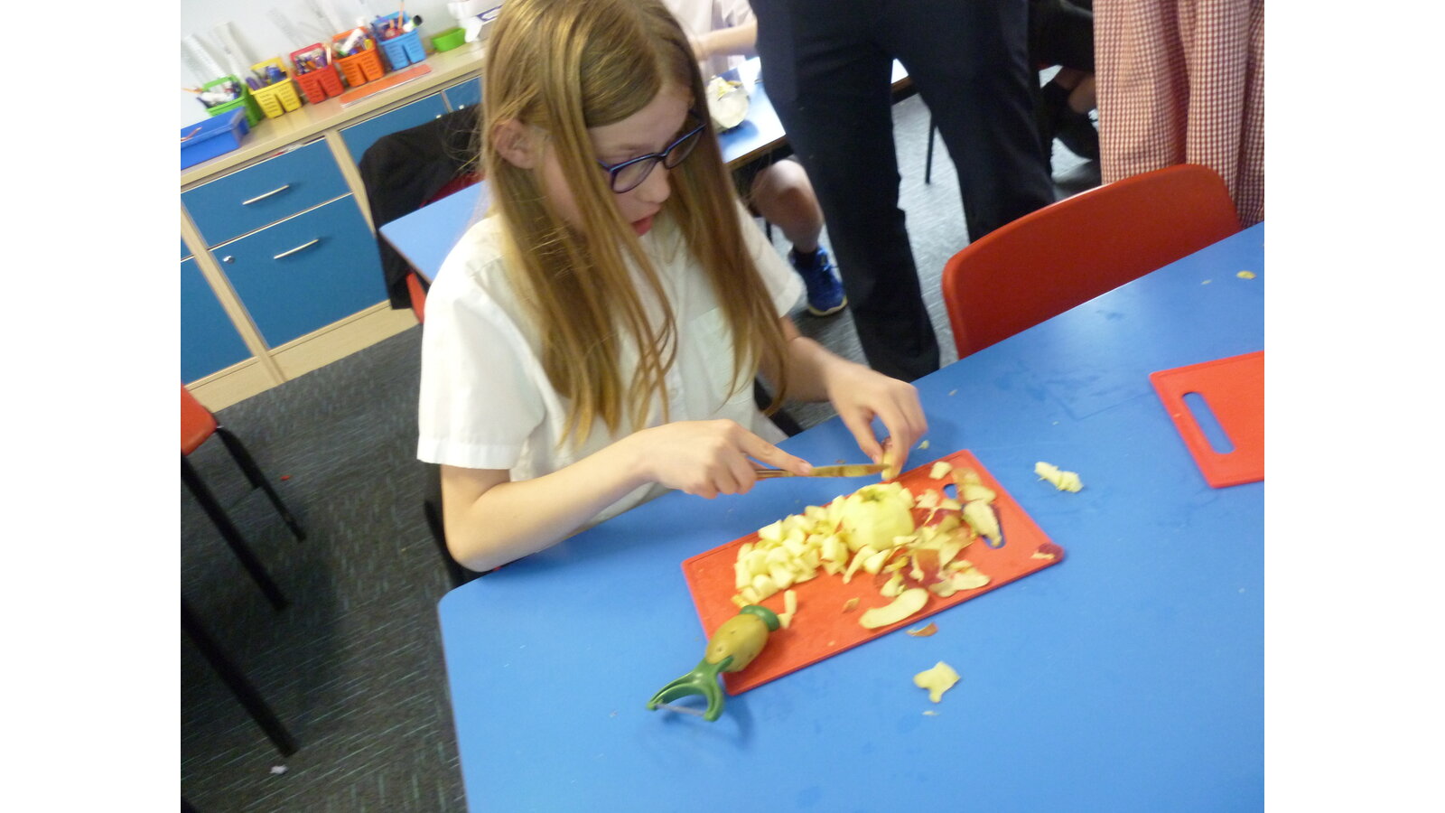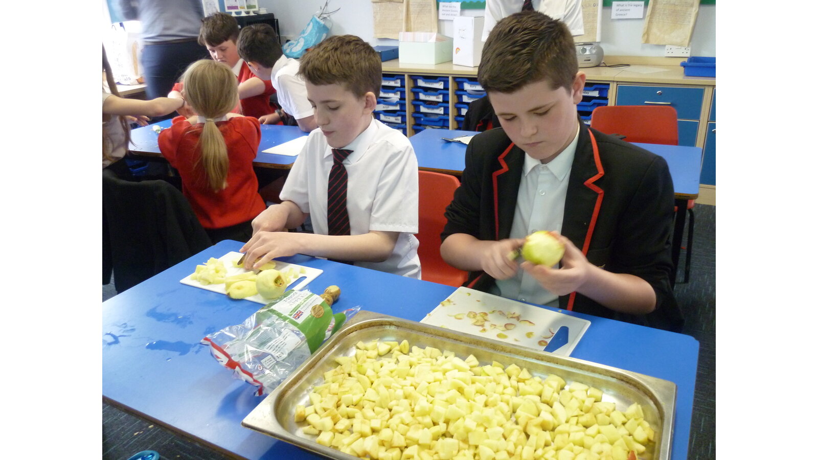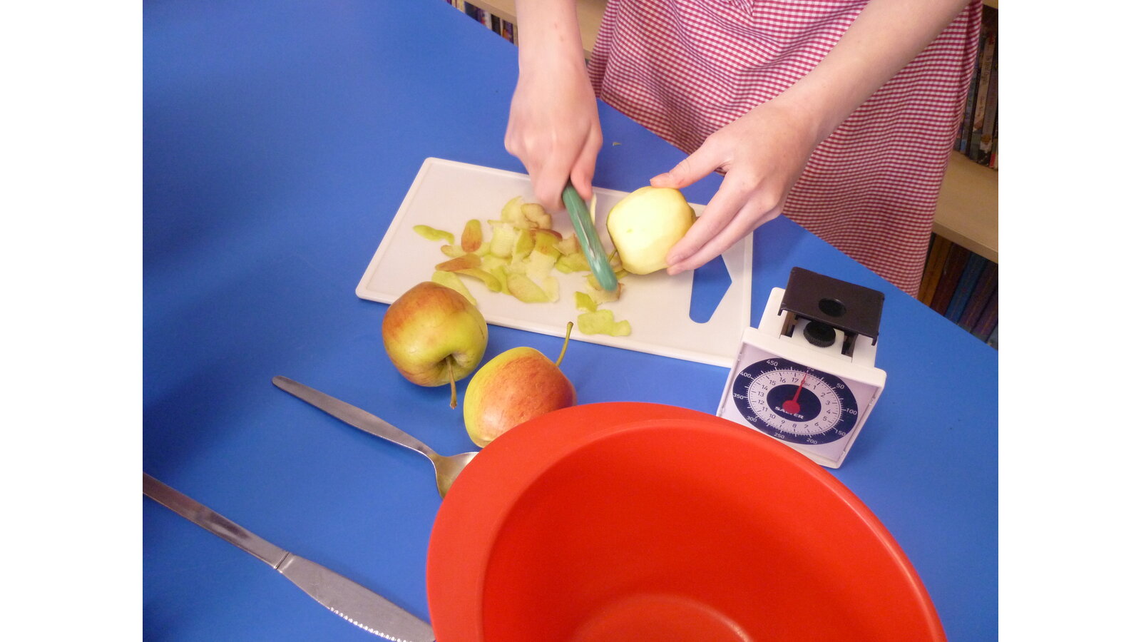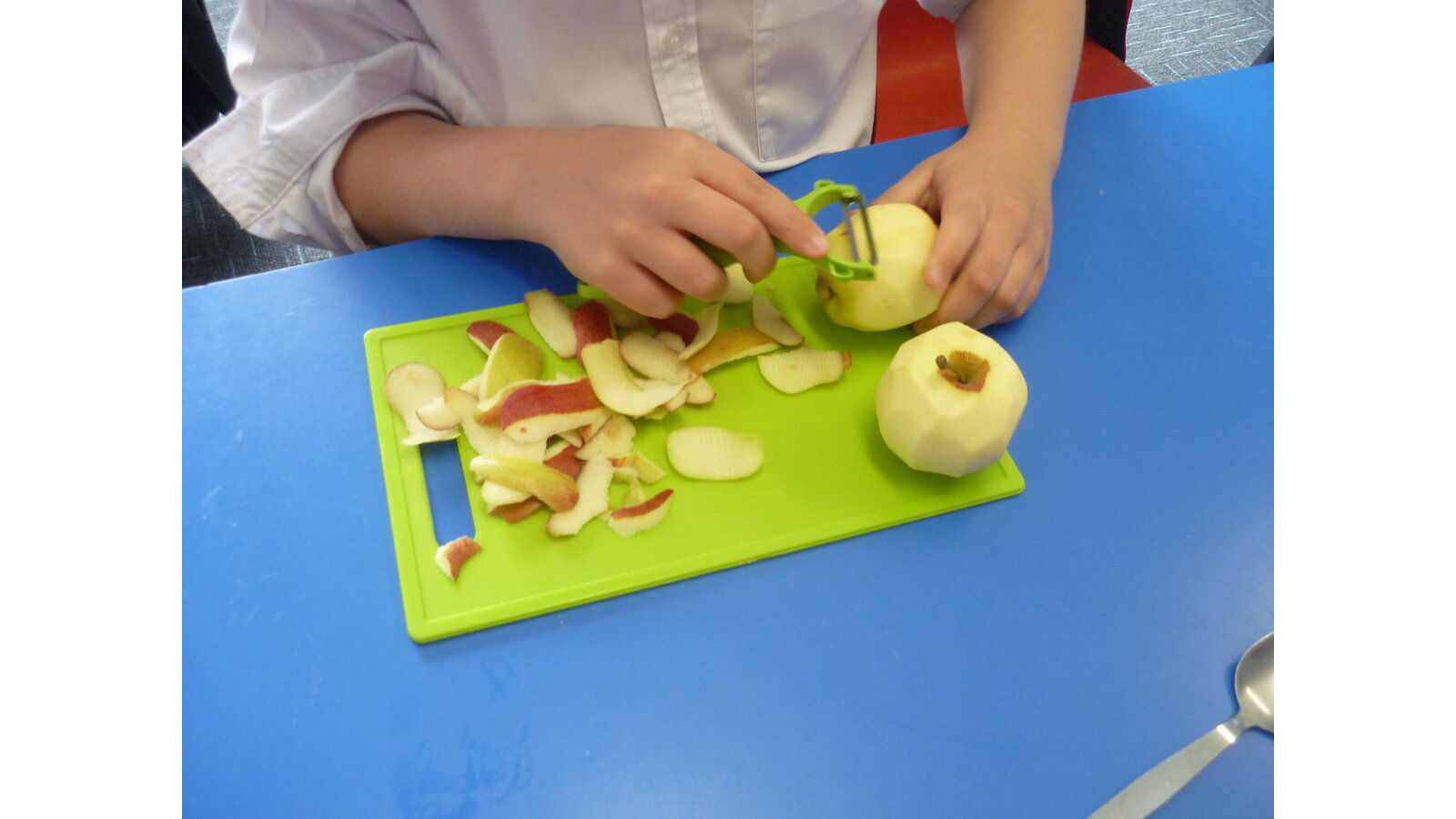 In DT this week, we cooked an apple crumble. All of us helped to peel and cut the apple then we mixed ingredients together to make crumble. It tasted delicious!