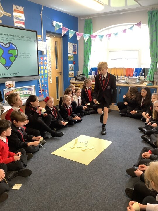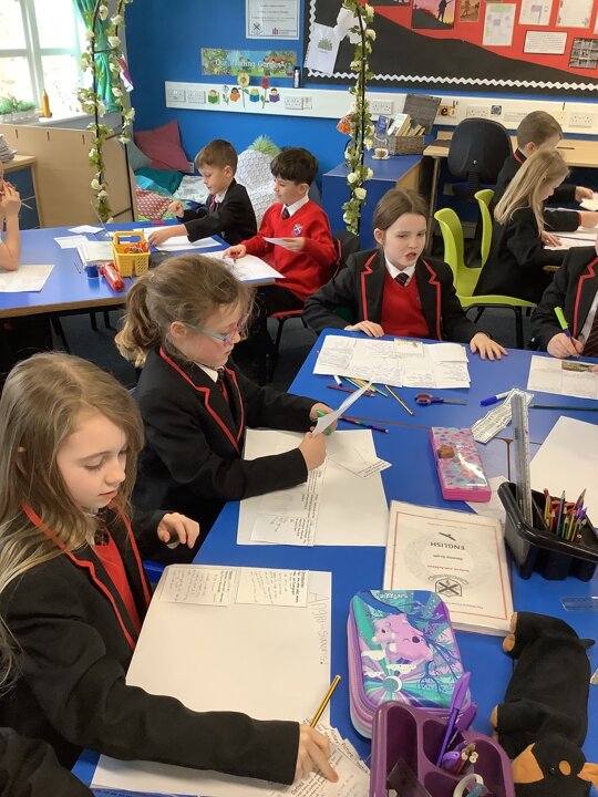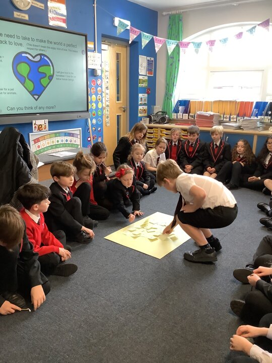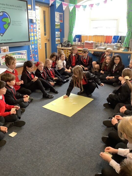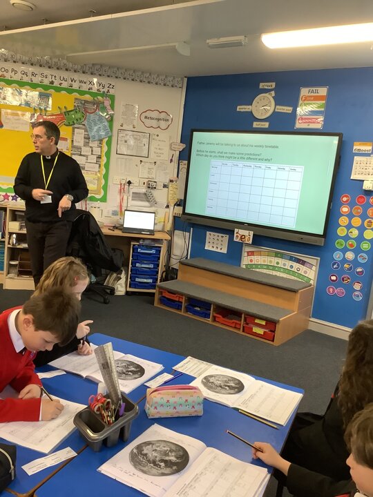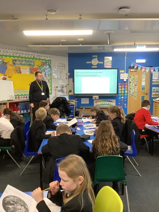 This week, in English, we have written non-chronological reports about the Anglo-Saxons. We focused our writing on using features such as subtitles, captions, past tense and formal writing. In Maths, Year 4 have been finding the perimeter of rectilinear shapes as well as finding missing lengths. Year 3 have been continuing with multiplying and dividing 2-digit and 1-digit numbers. In Science, we have explored the use of renewable energy and have used these ideas to invent homes for the future which are sustainable for the environment. We also celebrated safer internet day by discussing the positive and negative impact online influencers can make. This lesson sparked a good conversation about what we should believe from the content we see online. On Thursday, we enjoyed taking part in a vegetarian cooking worship with the Phunky Food team and parents. In RE, we interviewed Father Jeremy to learn about his working week and then made links between his life and Jesus’ life. Well done Class 3 for a great half term. Remember to learn your lines over half term and I look forward to seeing you back for Spring Term 2.