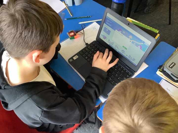 In English, Class 4 finished, drafting, editing and publishing their Beowulf legends with great pride and care. The stories, which acted as a sequel to Micheal Morpurgo's 'Beowulf' demonstrated a brilliant grasp of choosing suitable vocabulary such as 'blood-lusting tyrant' and 'scaley talons'. Wonderful writing was also seen in the pupils' write-up of their science experiment investigating the effect of adding more bulbs to a circuit. To help measure the effect of adding more lightbulbs to a series circuit, the children coded Microbits to work as light sensors allowing them to retrieve data to support their conclusions and findings.
