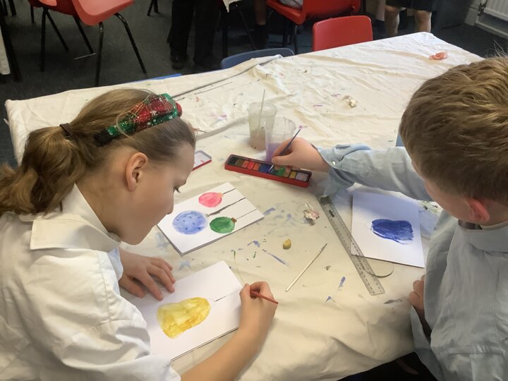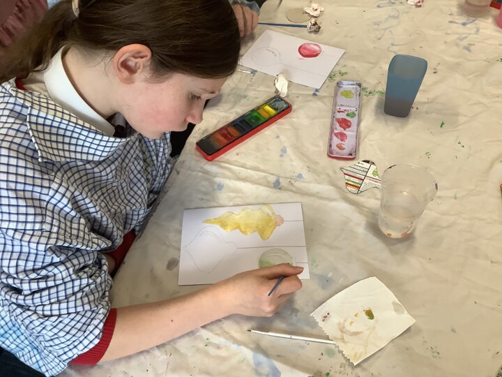 In Art, we have been using water colours to paint cards for the community which will be handed out by our year 6 next week.