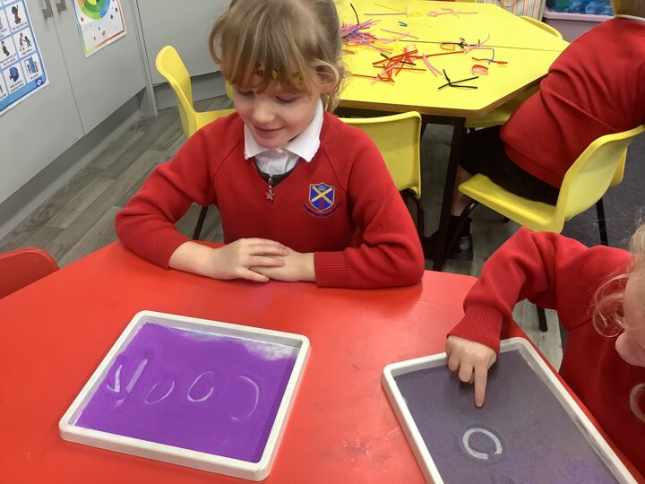 Preschool have been singing and dancing to nursery rhymes. They are getting really good at forming the phonemes s,a,t,p,i and n. They have enjoyed using the sand trays, pipe cleaners and magic sand to form these letters. We will endeavour to keep playing rhyming games, although the children are getting much better at rhyming CVC words.