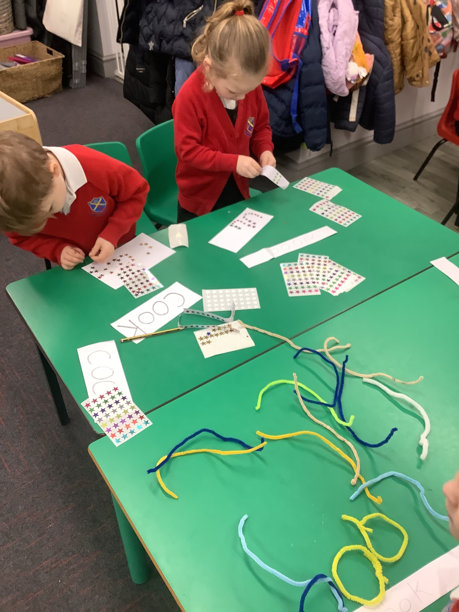 This week in a Monster Phonics reception have been learning the short oo sound, such as in the words look and book. They have used sand, pipe cleaners and stars to form words containing this sound.