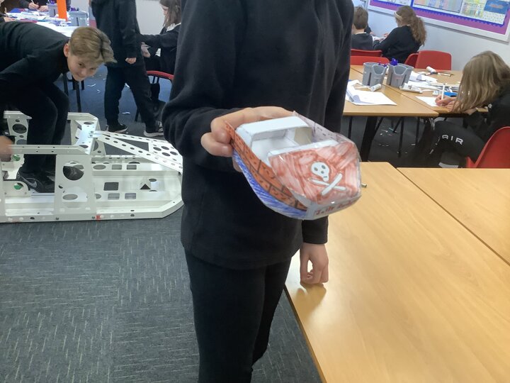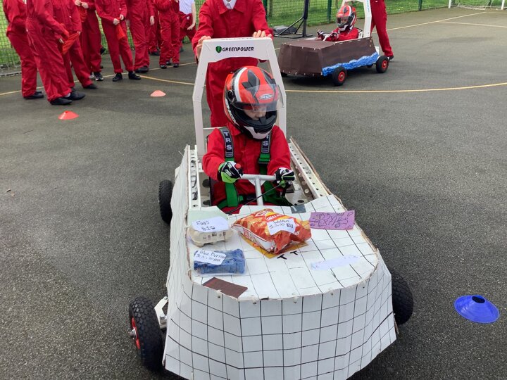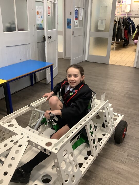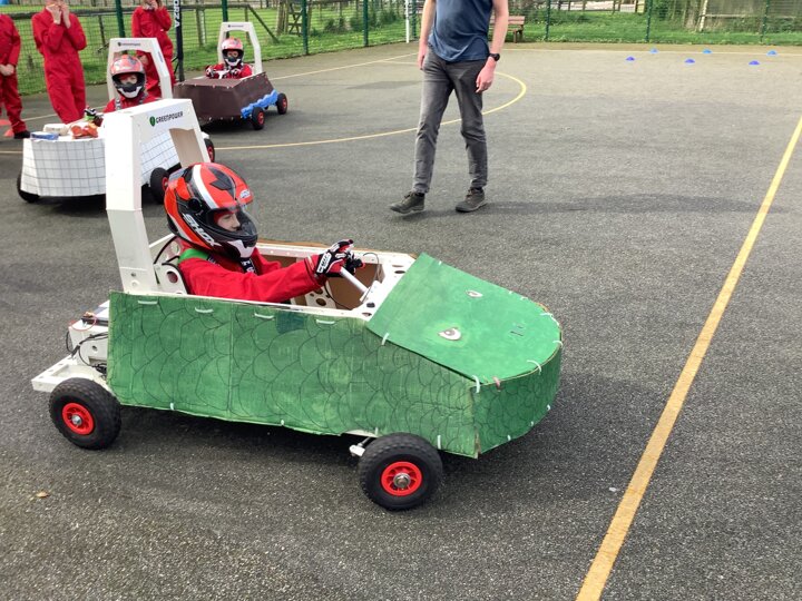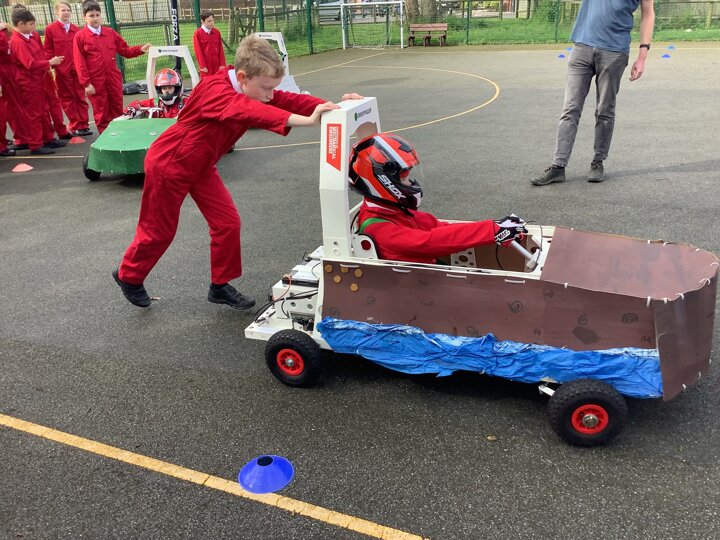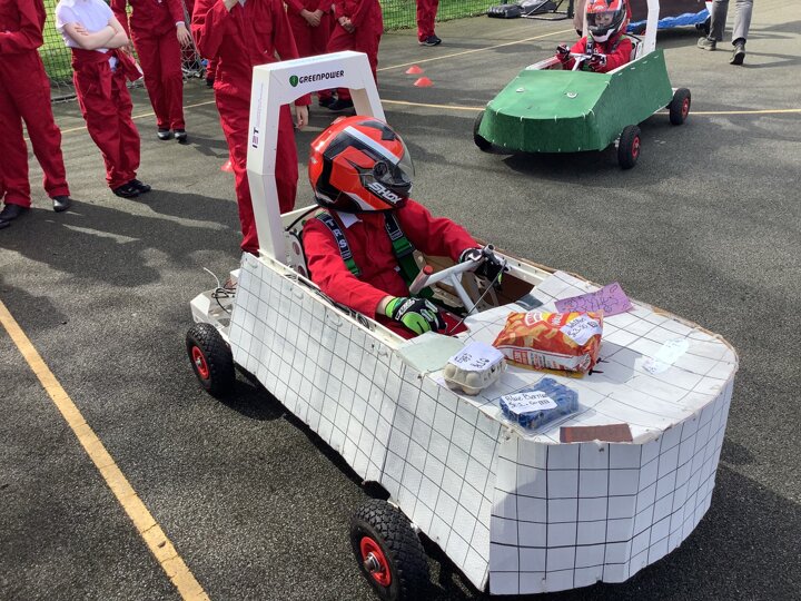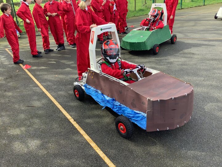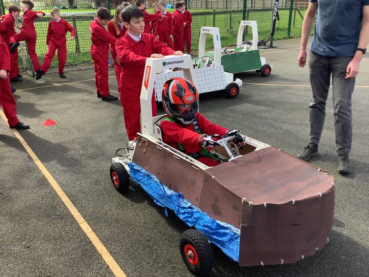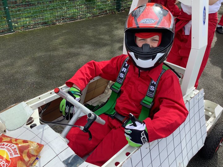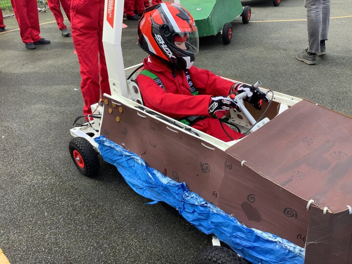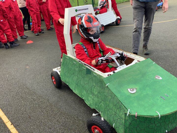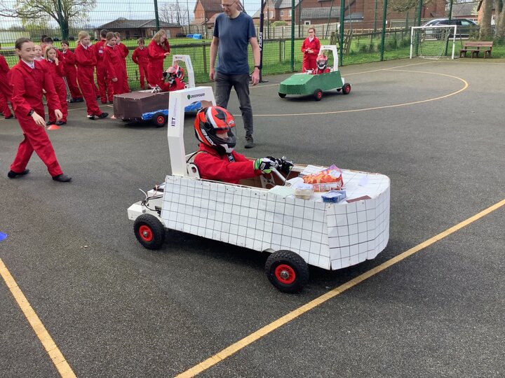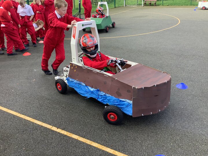 Over the last few months, our year 5 and 6s have been working on Go-Karts. It has been a very fun experience and we are extremely grateful to have Dr Allen come into our school and help us. Our class has been split into 3 teams who decided to make their themes : Team Tesco, The Dragon Riders and The Jolly Rogers (us). The first session was on the 14th of December (2023) when we did risk assesments and discussed team ideas. On our next session on the 8th of January (2024) we collectively decided to do a pirate themed car as well as creating mini models of the car and body work. Over the next few sessions we began our car and bodywork. Year 6 built the Go-Kart and Year 5 created the cardboard bodywork. Our design was a pirate ship with rats on the back, a flag, a skull and crossbones on the bonnet, waves down the side and a number plate on the front. We look forward to race day when we race against other schools from throughout Staffordshire. (Written by Ernie and Alex from Team Jolly Rogers)