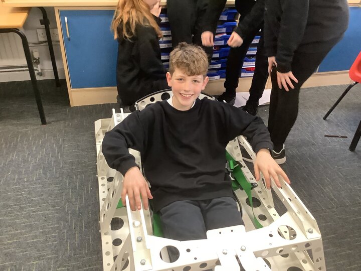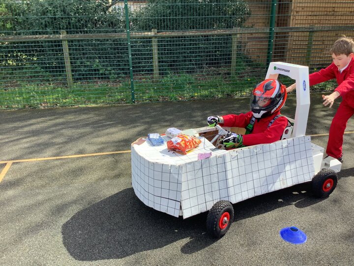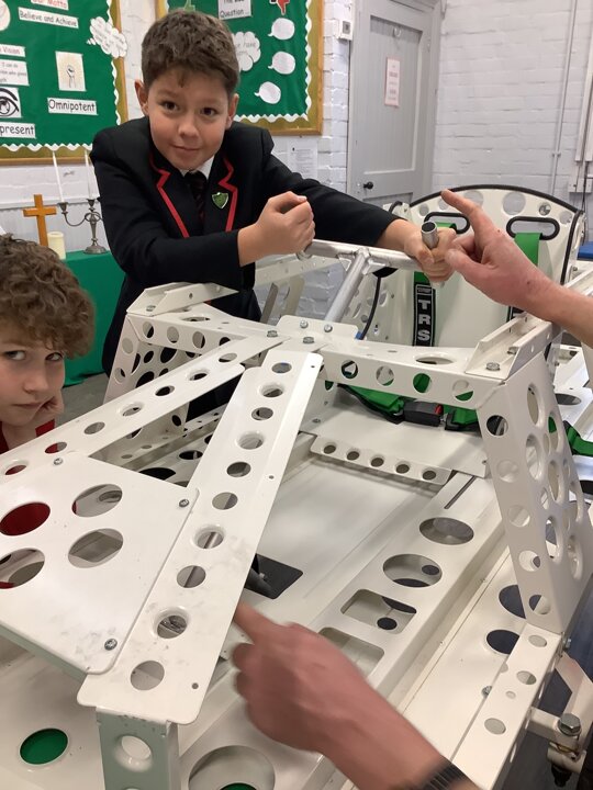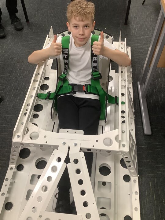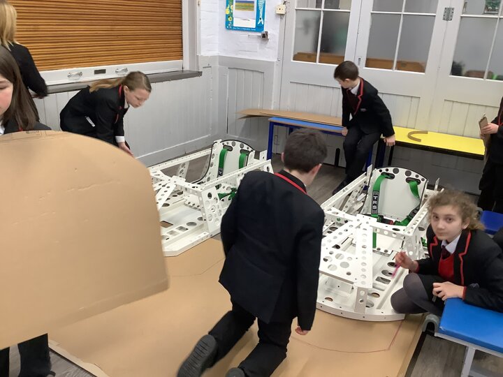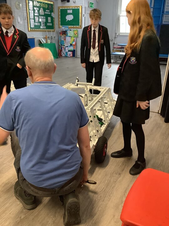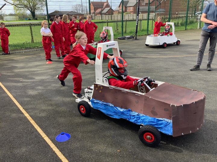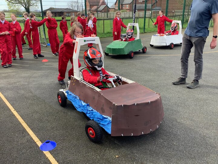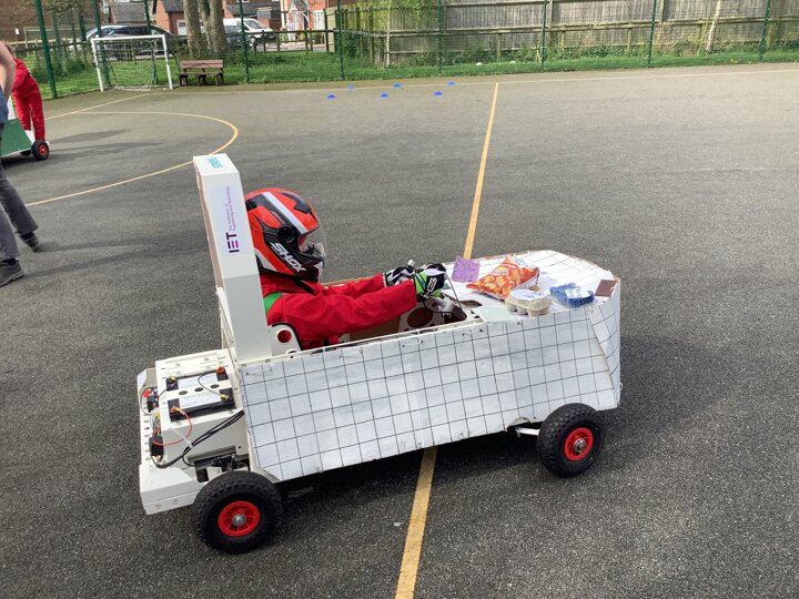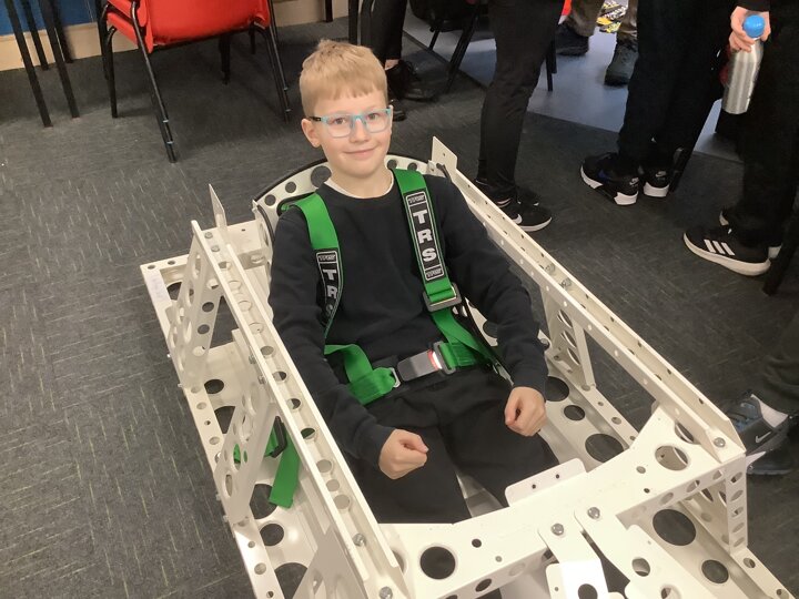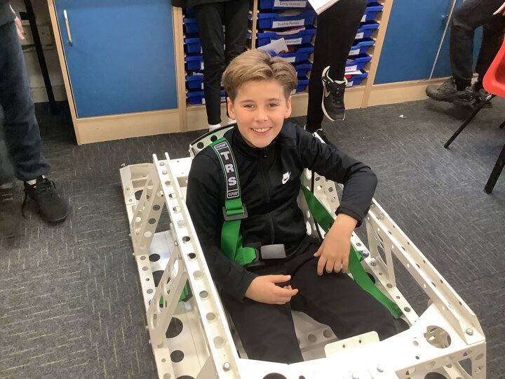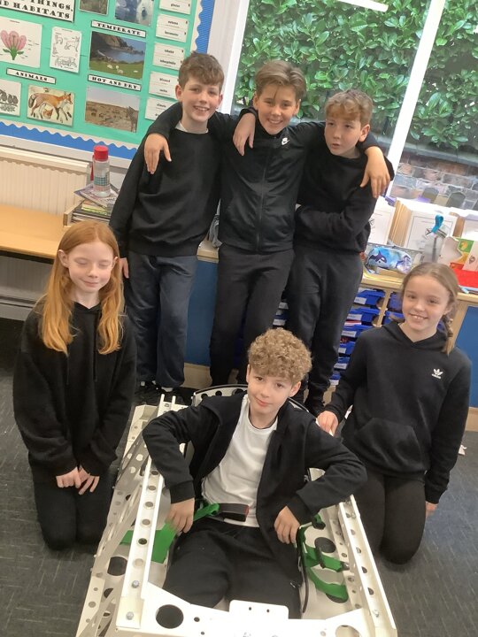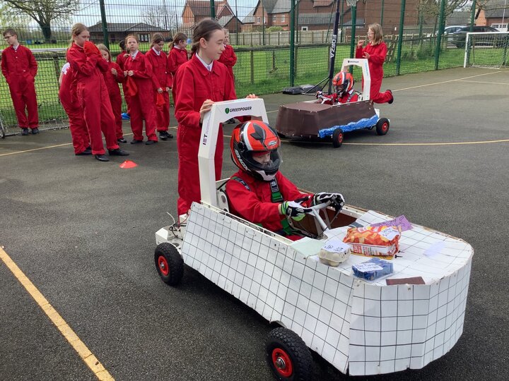 Over the last few months, our year 5 and 6s have been working on Go-Karts. It has been a very fun experience and we are extremely grateful to have Dr Allen come into our school and help us. Our class has been split into 3 teams who decided to make their themes : Team Tesco, The Dragon Riders and The Jolly Rogers (us). The first session was on the 14th of December (2023) when we did risk assesments and discussed team ideas. On our next session on the 8th of January (2024) we collectively decided to do a pirate themed car as well as creating mini models of the car and body work. Over the next few sessions we began our car and bodywork. Year 6 built the Go-Kart and Year 5 created the cardboard bodywork. Our design was a pirate ship with rats on the back, a flag, a skull and crossbones on the bonnet, waves down the side and a number plate on the front. We look forward to race day when we race against other schools from throughout Staffordshire. (Written by Ernie and Alex from Team Jolly Rogers)