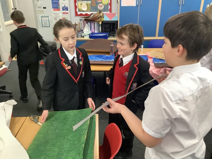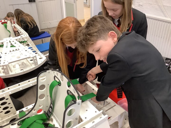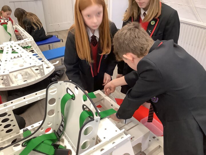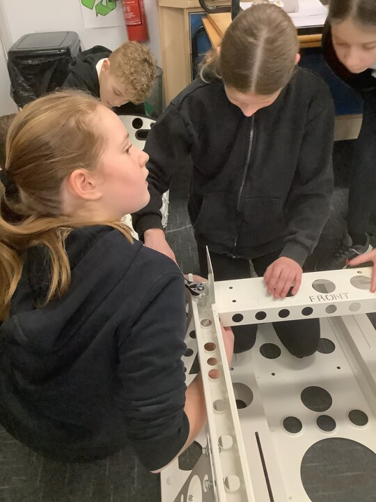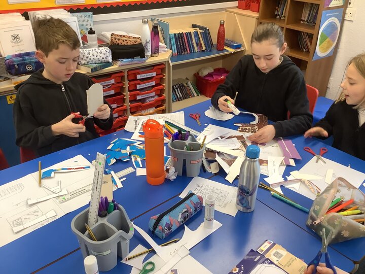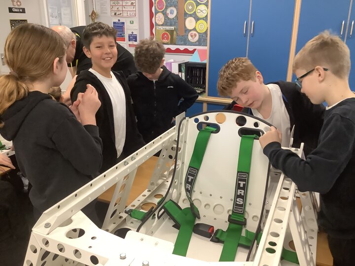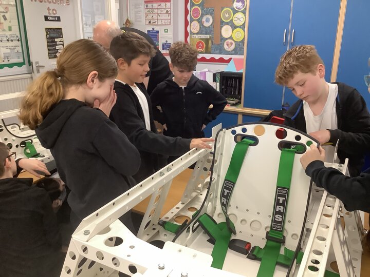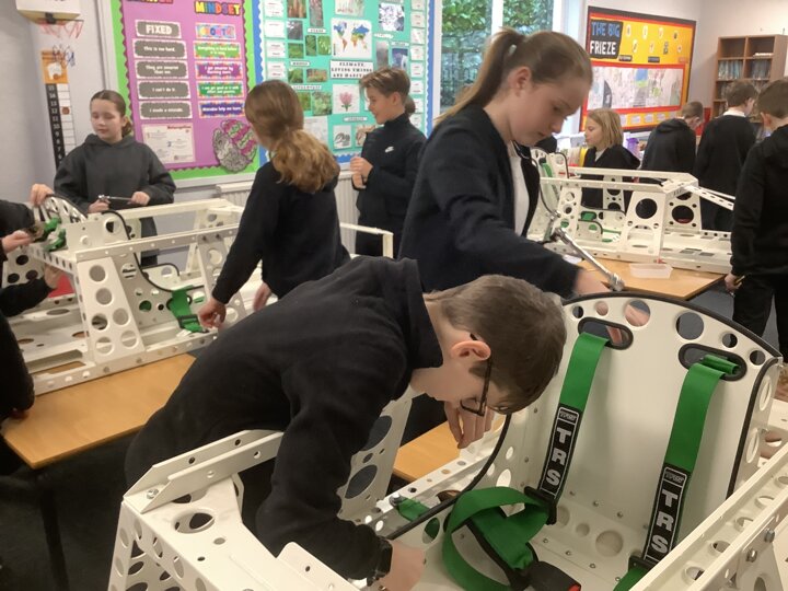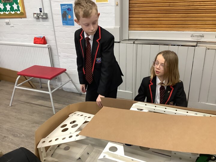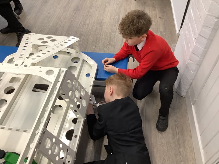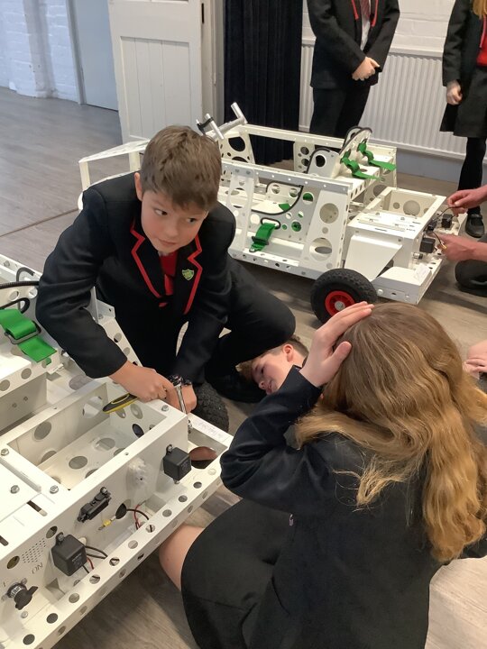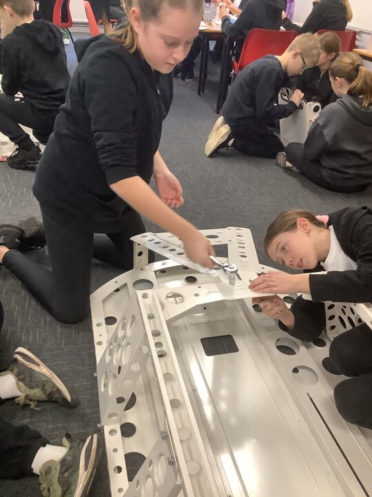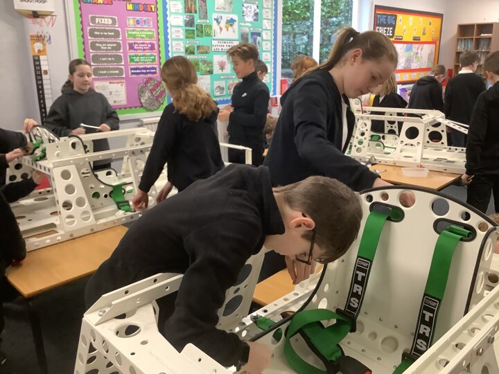 Over the last few months, our year 5 and 6s have been working on Go-Karts. It has been a very fun experience and we are extremely grateful to have Dr Allen come into our school and help us. Our class has been split into 3 teams who decided to make their themes : Team Tesco, The Dragon Riders and The Jolly Rogers (us). The first session was on the 14th of December (2023) when we did risk assesments and discussed team ideas. On our next session on the 8th of January (2024) we collectively decided to do a pirate themed car as well as creating mini models of the car and body work. Over the next few sessions we began our car and bodywork. Year 6 built the Go-Kart and Year 5 created the cardboard bodywork. Our design was a pirate ship with rats on the back, a flag, a skull and crossbones on the bonnet, waves down the side and a number plate on the front. We look forward to race day when we race against other schools from throughout Staffordshire. (Written by Ernie and Alex from Team Jolly Rogers)