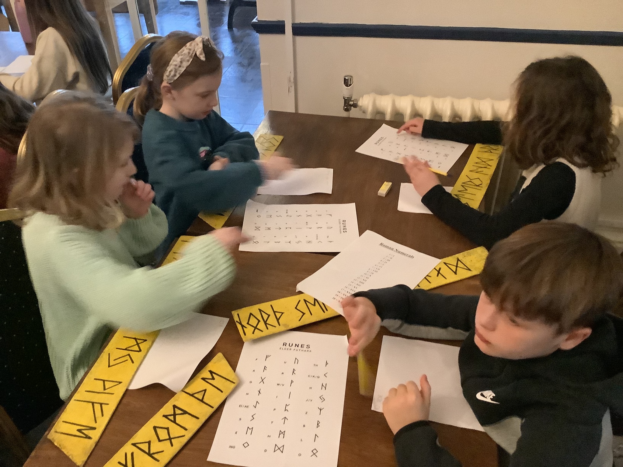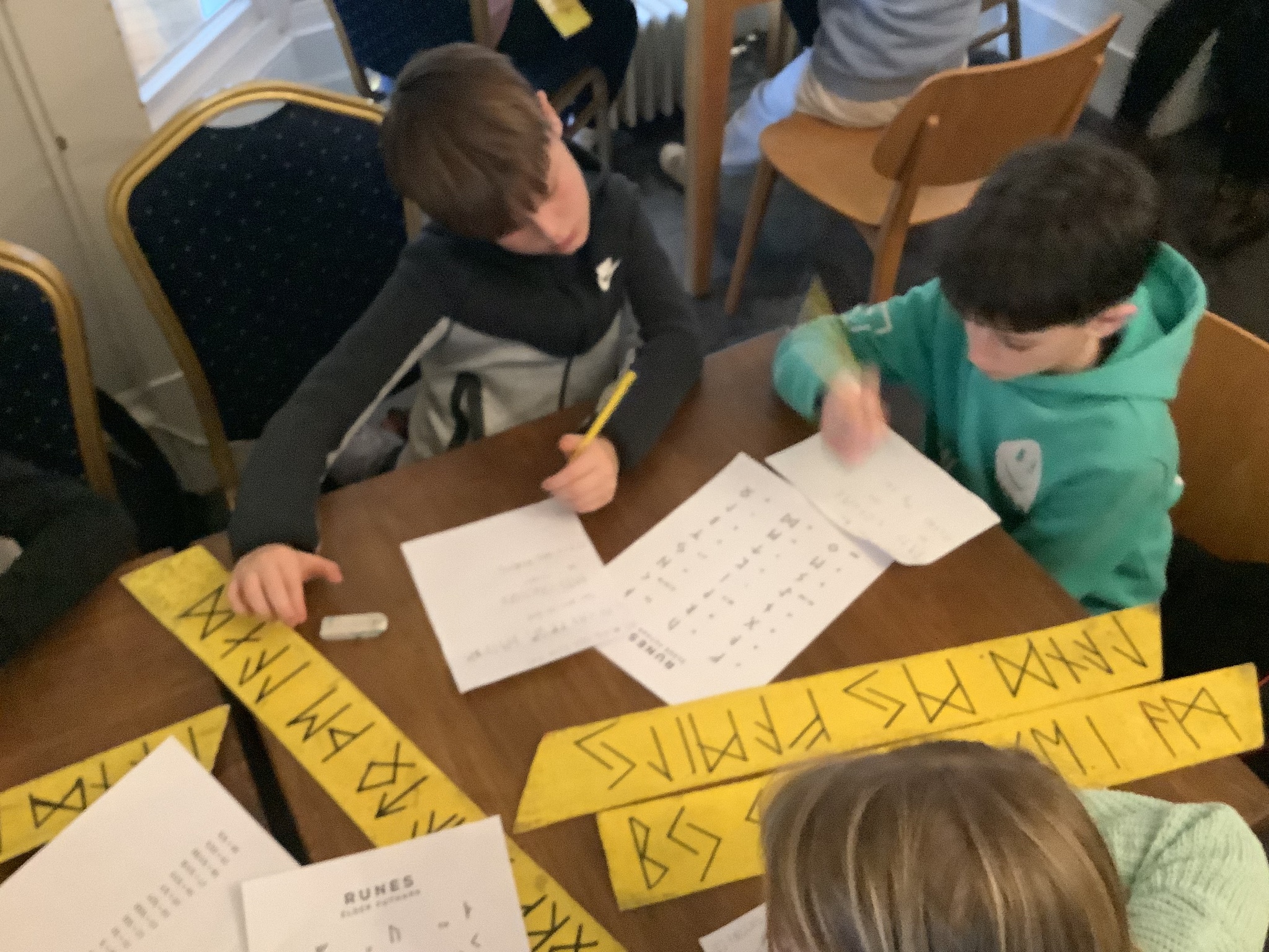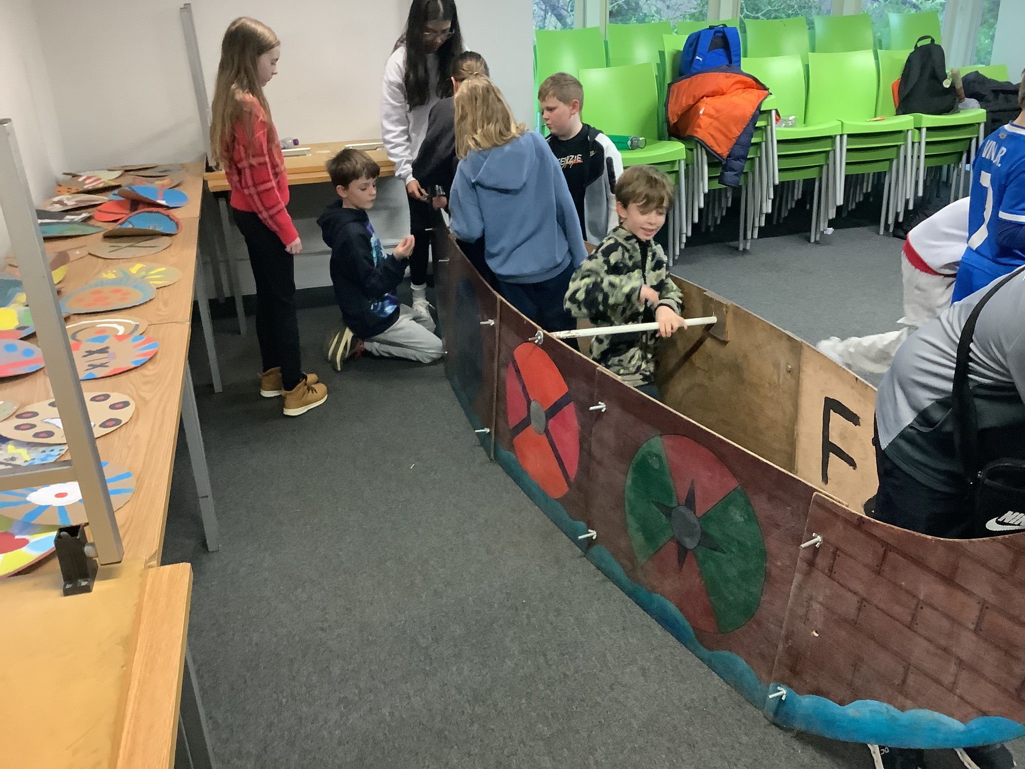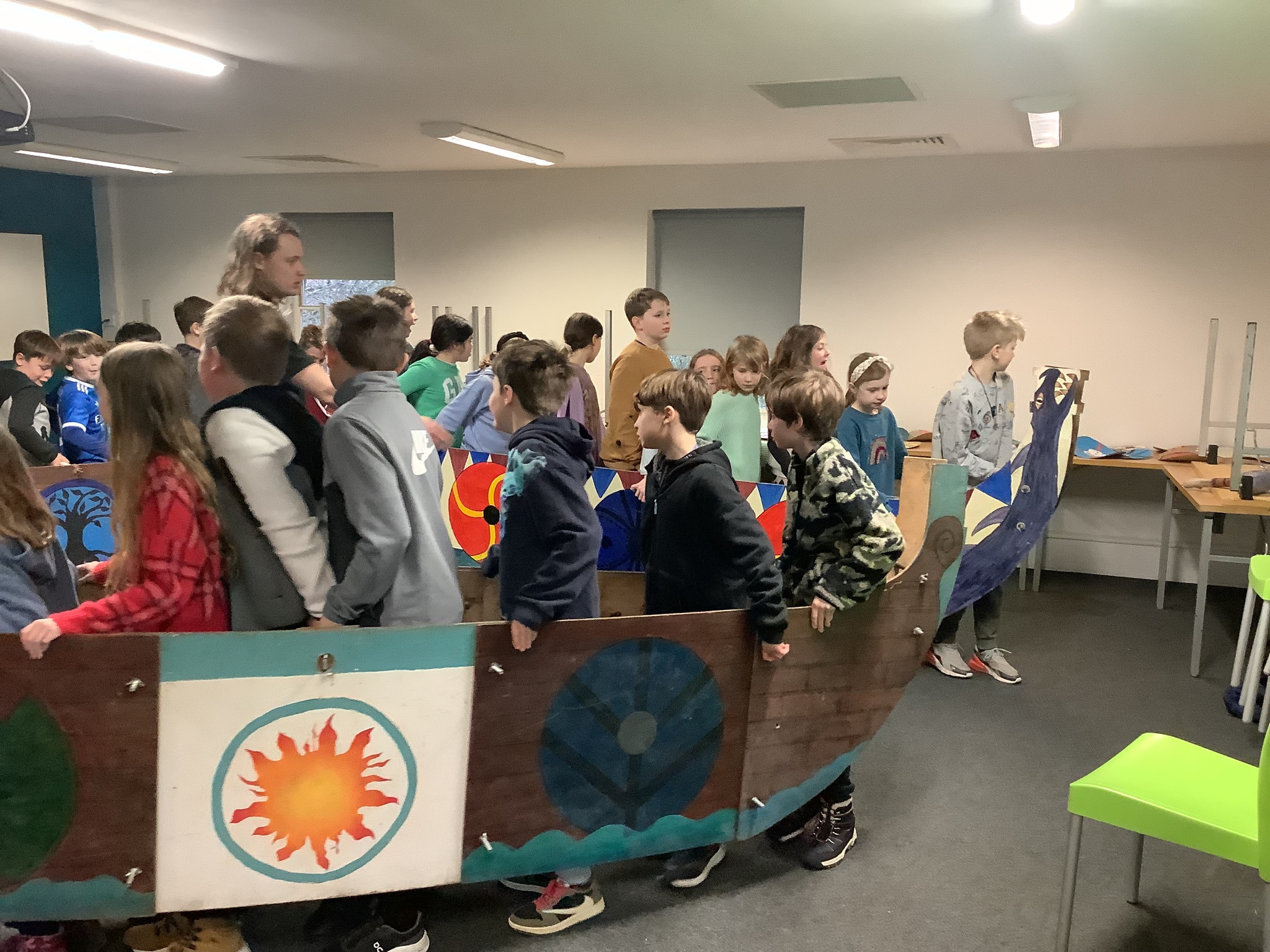 After a much needed sleep and a generous breakfast, we got started on our 2nd day’s activities. Our class began by decrypting runes from an old eipic. Then, we enjoyed performing famous Norse mythology about Valhalla and Ragnarok. Our final activity before lunch involved working as a team to build viking longships and then racing them against each other.